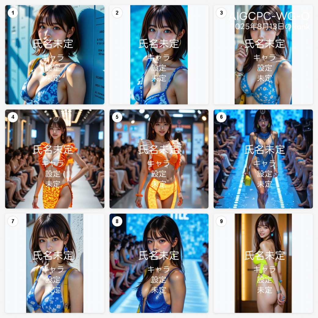 2025 年 8 月 13 日時点における、AIGCPC-WG-G のキャラクター画像ランキングを作成しました。